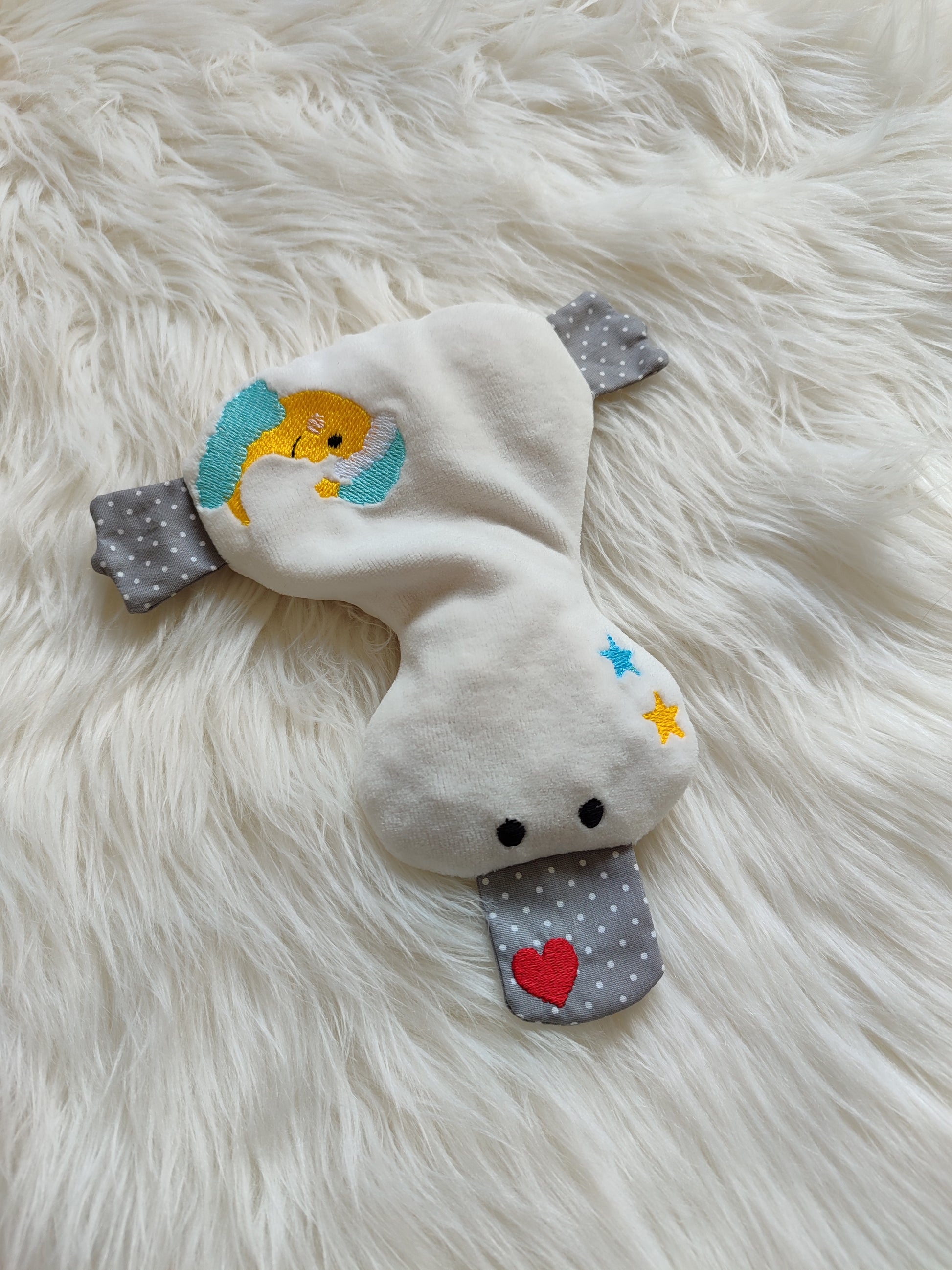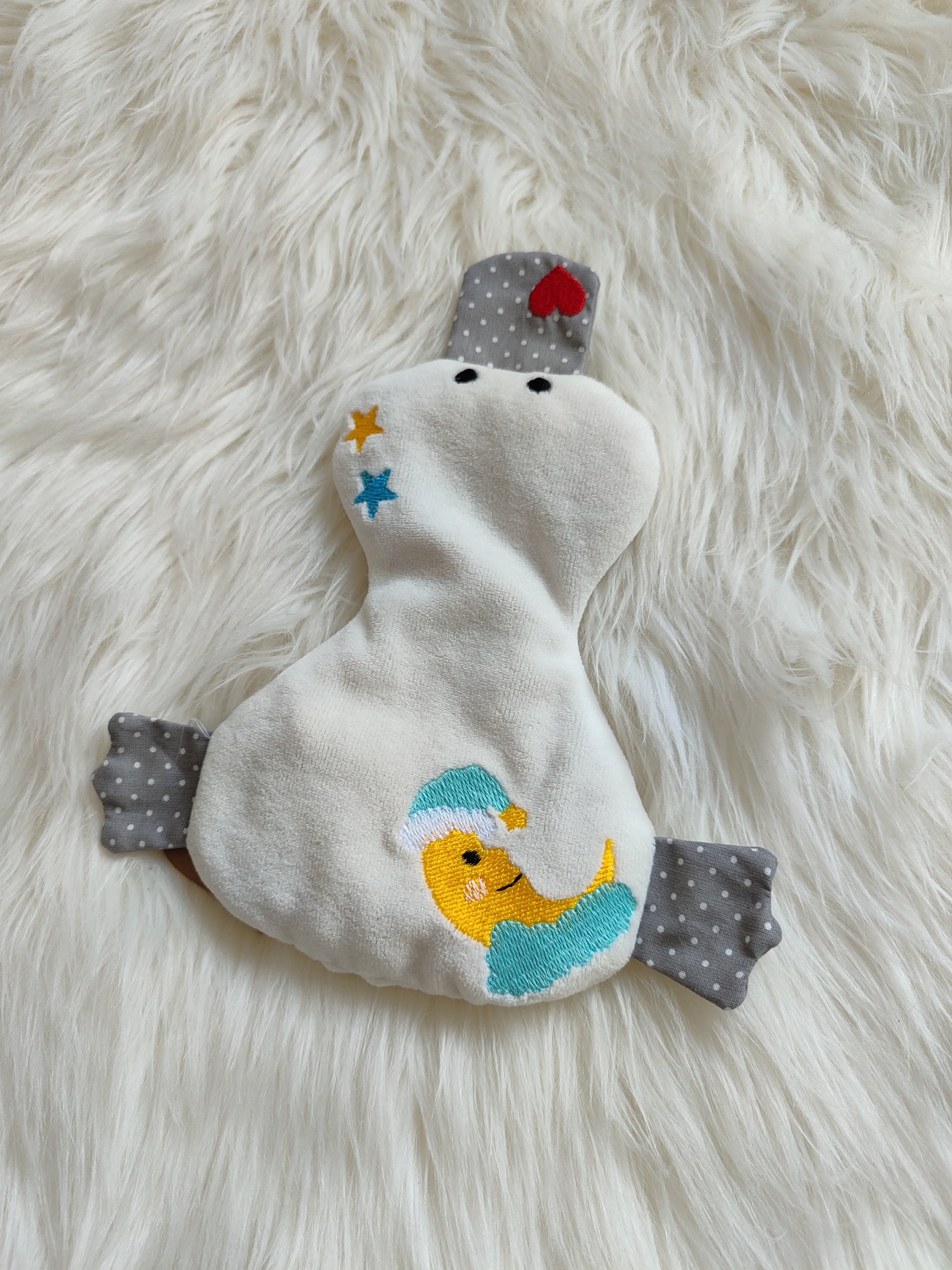 Dieses niedliche Kirschkernkissen in Entenform bringt Entspannung mit einem Augenzwinkern! Gefüllt mit naturbelassenen Kirschkernen, die beim Erwärmen wohltuende Wärme spenden, begleitet Sie diese kleine Ente als treuer Begleiter. Der süße Nicki- und Baumwollstoff ist bestickt mit einem originellen Mond-Motiv mit Sterne – perfekt für alle, die gerne anpacken und auch mal relaxen wollen. Kuschelig, praktisch und einfach zum Verlieben!